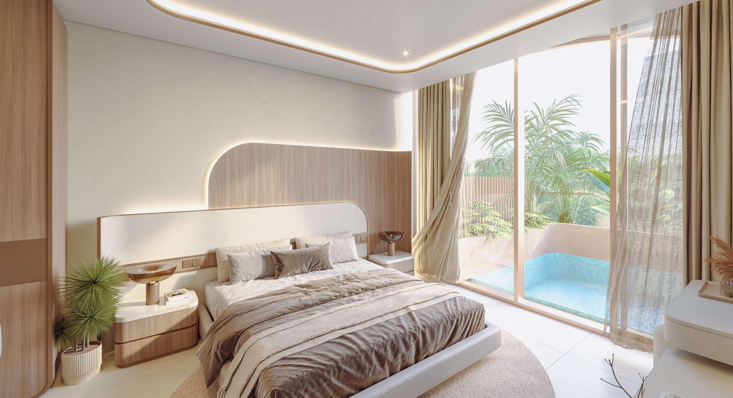 Temiz hatlar, yumuşak kıvrımlar ve doğal dokularla şekillenen mimari dili; ışık, denge ve zamansız zarafeti ön plana çıkarır. Vestoria Bay, klasik yüksek yoğunluklu projelerden farklı olarak, sakin ve seçkin bir kıyı yaşamı sunar.